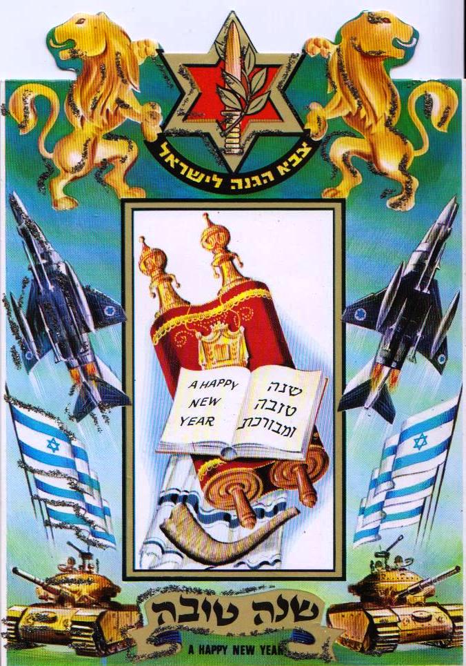 כמדומני שכיום אנחנו נזקקים פחות ופחות להוכחת הצבאיות הישראלית (שנהפכה לעובדה מוצקת וקיימת) בדימויים החזותיים ככלל ובאגרות הברכה ל"שנה טובה" בפרט.