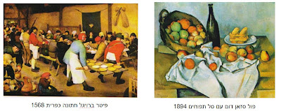 ובאשר לטעם הקיבוצי. גם בו יש מהמיוחדות. אני נזכר בתמונות שנתלו בבתי הילדים ובחדרי החברים בשנות החמישים. אלו לא היו סתם תמונות באקראי. הן נבחרו בקפידה מתוך מחשבה וראיה אסטטית חינוכית. היו אלו רפרודוקציות שנרכשו בחנות "לוטוס" ברחוב אלנבי בתל אביב במחיר השווה לכל נפש. בעל החנות היה קומוניסט , שייבא "אומנות מתקדמת". בחנות הרפרודוקציות שלו יכולת למצוא גם אומנות קומוניסטית מסין הגדולה. תמונת "הקוצרים" של פיטר ברויגל (1525-1569) מהמאה ה – 16. חבורה של קוצרים בשדה שיבולי זהב, ובצדה חבורת איכרים (נשים וגברים) סועדים את ליבם בהפסקת הקציר. ברויגל הוא אמן הפרטים הקטנים. הצבעים חמים ומשרים שמחה של איסוף הקציר. חג ביכורים פלמי... תמונה אחרת של ברויגל "חתונה כפרית" גם היא נוכחת הייתה בחדרי חברים בשנות החמישים. כוחה בעממיותה, באוטנטיות הפולקלוריסטית של שמחת חיים כפרית שורשית ופשוטה. מגש העץ הפשוט שסיביו ומסמריו מוטבעים בו עד לפרט האחרון, נישא אל הסועדים כשעליו מונחות צלחות מלאות באוכל של עניים, דייסת תירס ודייסת חלב. החתונה הענייה הזו מתרחשת באסם תבואה רחב, היא מחווה למעמד האיכרים הצנוע של העם הפלמי. לקיבוצניקים של שנות הארבעים – חמישים שבעצמם חייו חיי צנע ופשטות קל היה להזדהות עם הציור, במידה רבה הם ראו בו את חזות עצמם. כיום אין למוצא יותר בבתים הגדולים שבהרחבות הקיבוציות החדשות את ציוריו העממיים של ברויגל... עוד תמונת שדה מוצאים אנו בציור "המלקטות" של הצייר הצרפתי - אימפרסיוניסטי – ז'אן פרנסואה מילה (1814-1875). מילה שחיי בסביבה כפרית הרבה בציוריו לתאר את שדות הכפר ואת שעות הקציר.
