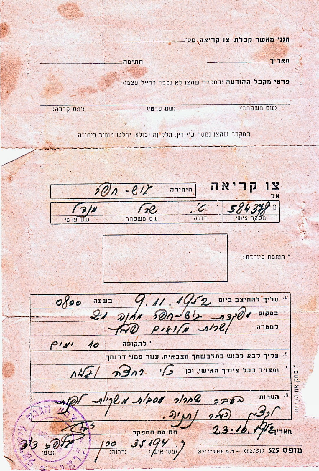 | צו קריאה - 1952 |